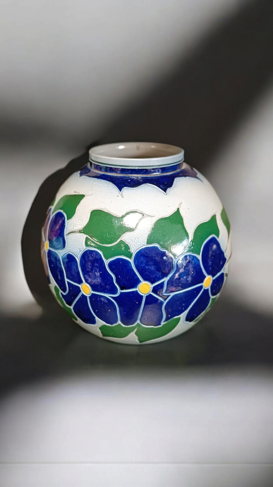 En parfait état , mesure env 20 cm de haut sur 15 cm de diamètre au plus large , décor floral .